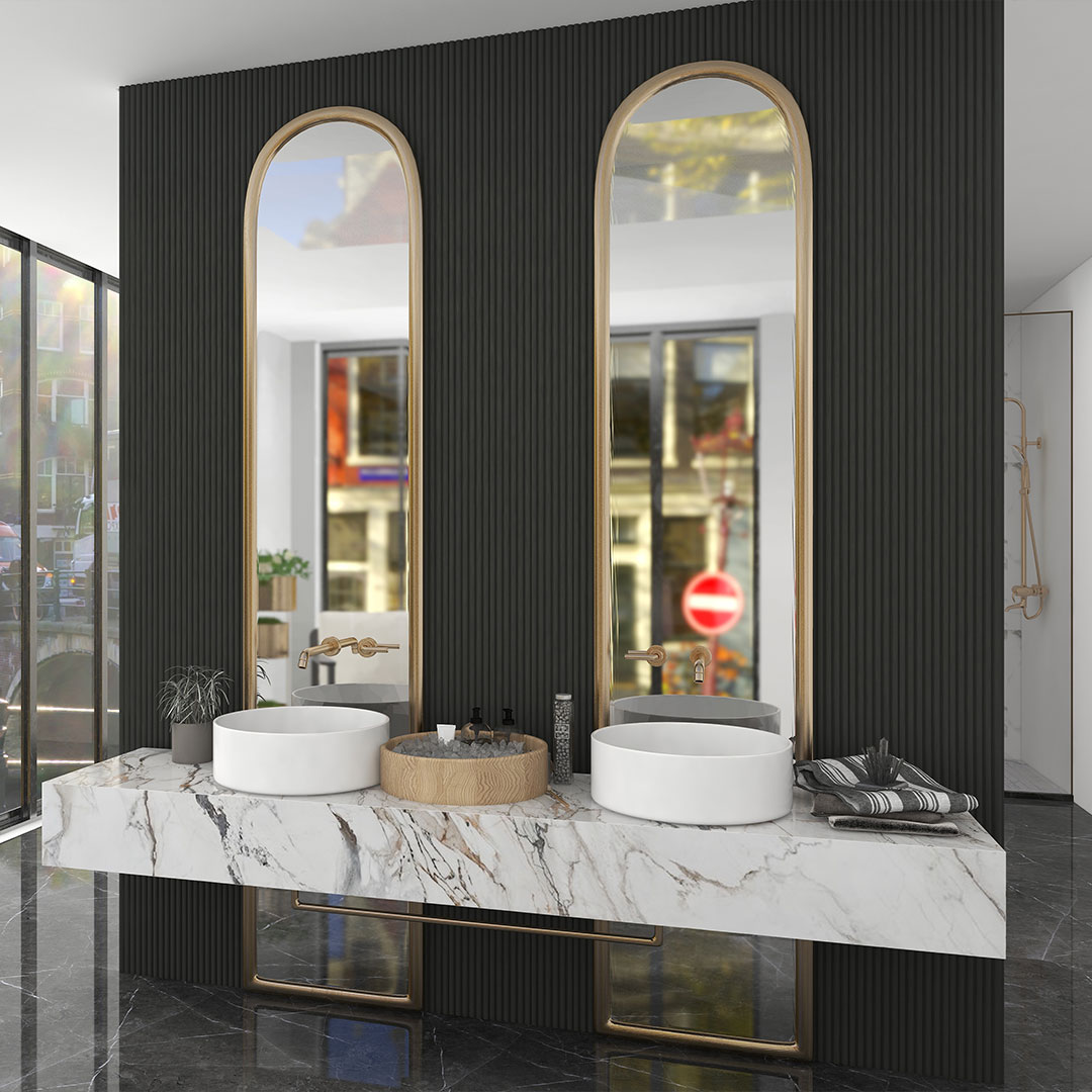 Aluvo Black Half Round Slat Panels designed for high impact feature walls. Provides strong visual definition combined with long term durability in demanding environments.