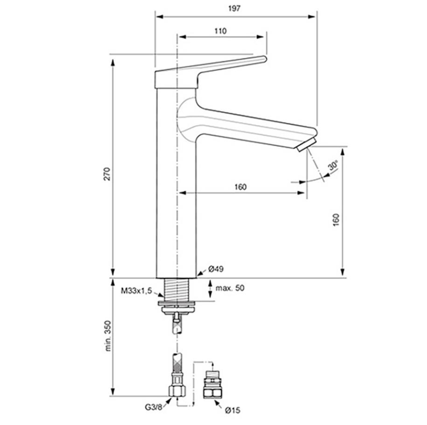 Contour 21+ single lever 1 hole tall basin mixer, no waste, flexible tails