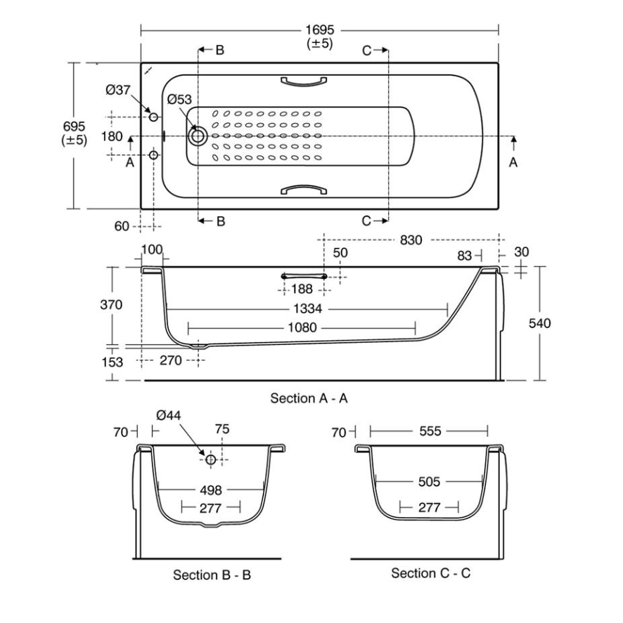 The tread pattern on Sandringham 21 baths should not be considered as a fully anti-slip surface and will not prevent all slipping. Frame and supports inclusive. Consideration should be given to safe hot water delivery and the use of an appropriate temperature reduction device