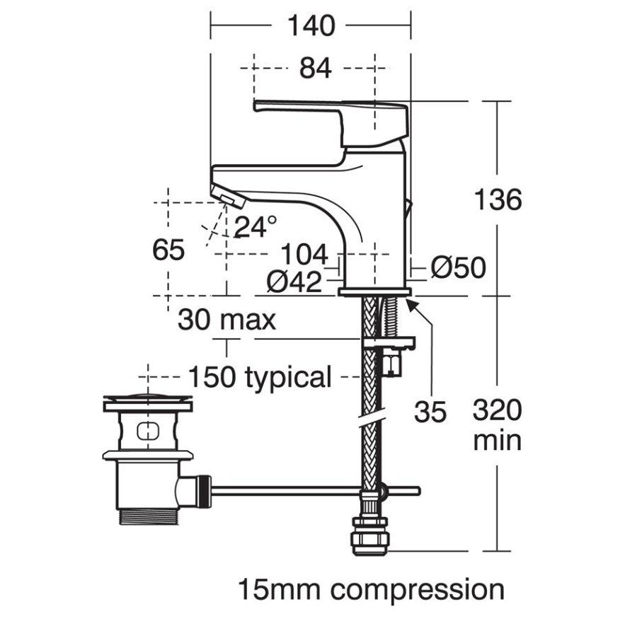 Armitage Shanks Sandringham 21 SL Basin Mixer with Pop Up Waste – Chrome