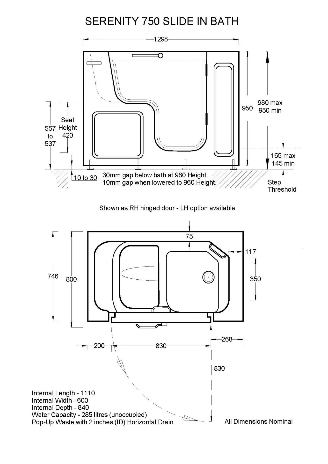 General Depth – 750mm