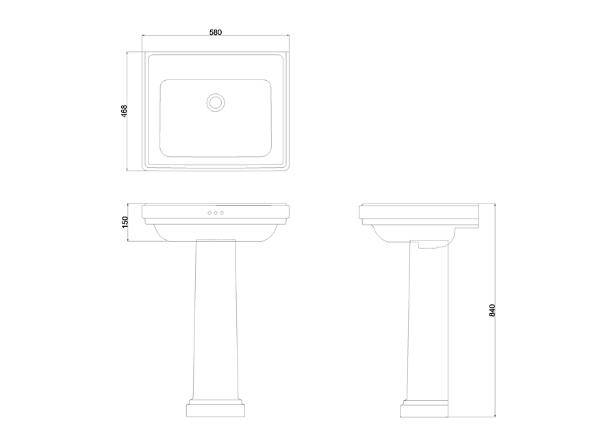 Burlington Riviera 580mm Square Basin 0, 1, 2 or 3TH with Riviera Full Pedestal