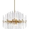 Aged brass finish 10-light pendant with glass rods in varying heights which refract the light. This pendant is supplied with three rods 155mm, 305mm and 610mm. Any combination of these rods can be use...