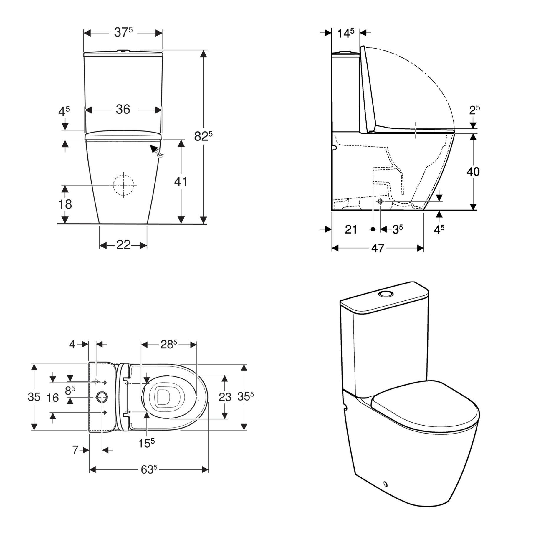 • Soft-close quick-release seat for easy cleaning and quiet use.