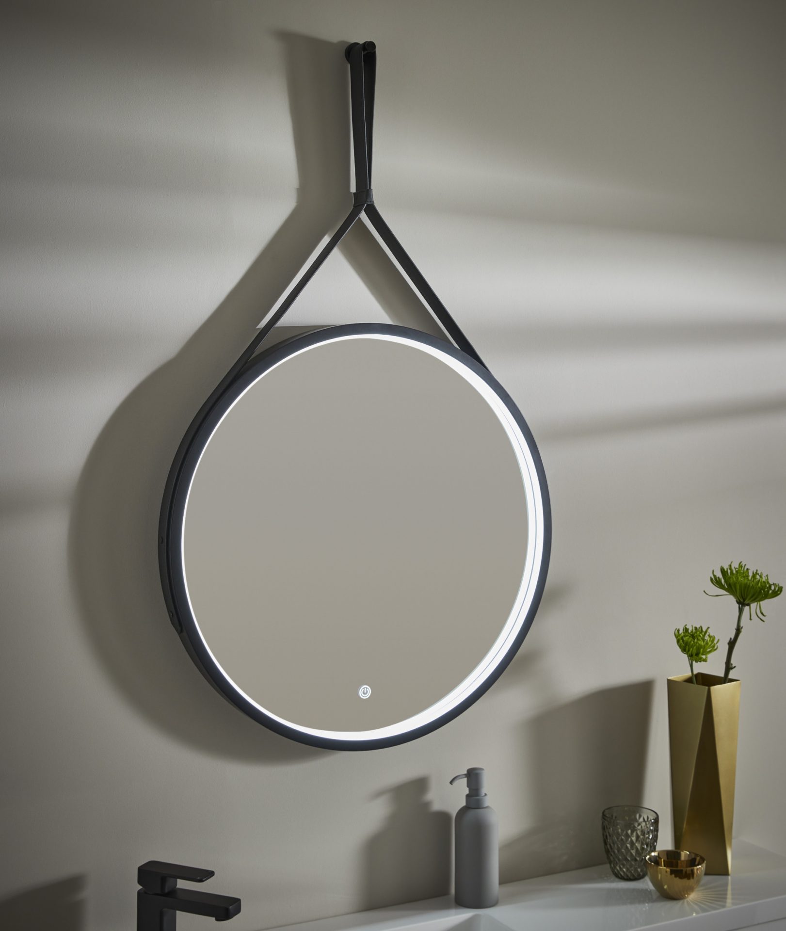 Black faux leather strap, black metal frame and black metal wall fixing included