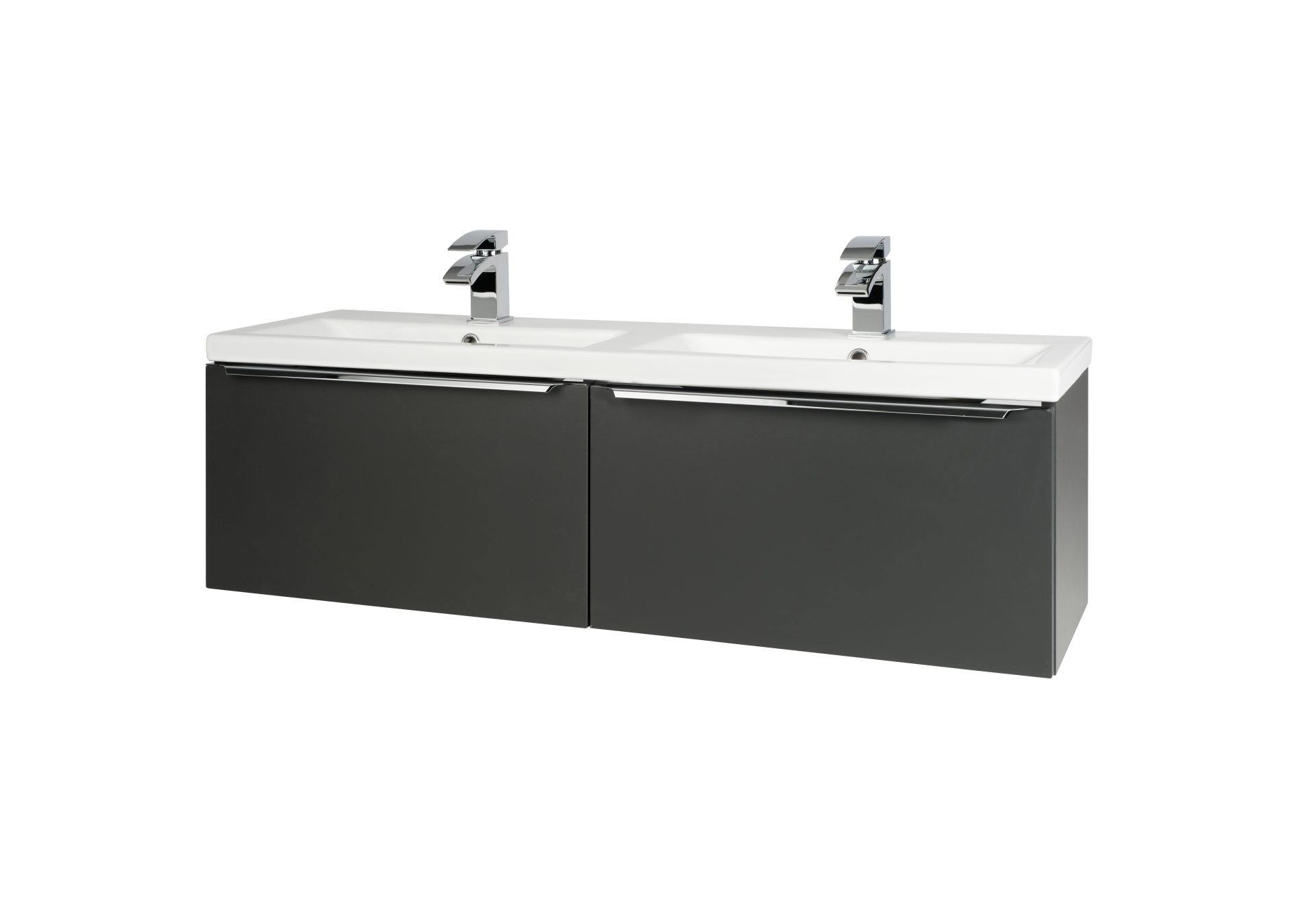 Kore 1200mm 2 Drawer Wall Hung Vanity Unit & Twin Ceramic Basin – Matt Dark Grey