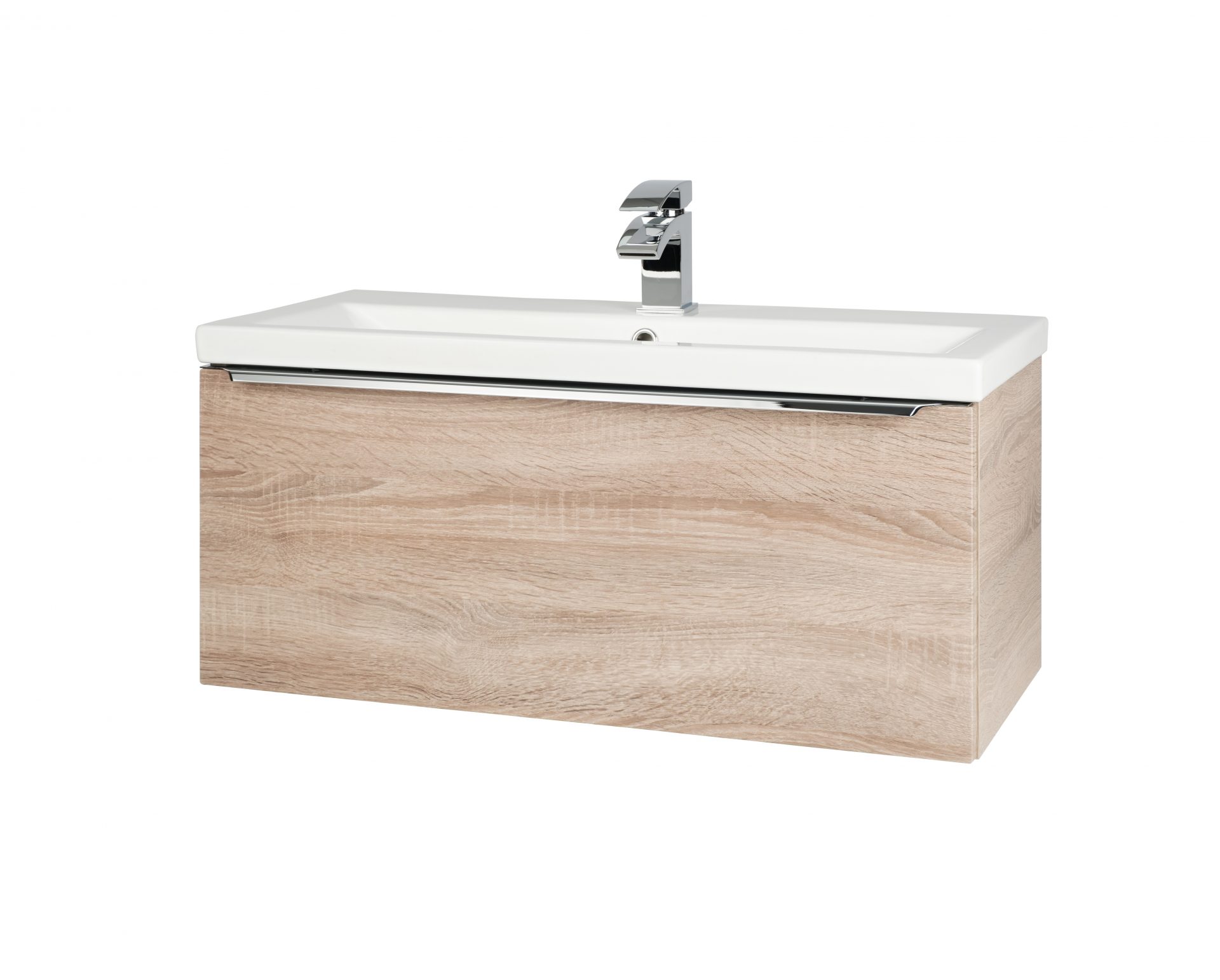 Kore 800mm 1 Drawer Wall Hung Vanity Unit & Ceramic Basin – Sonoma Oak