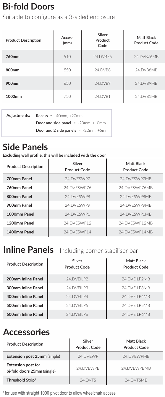 Side Panels (Excluding wall profile, this will be included with the door. Available upon request):