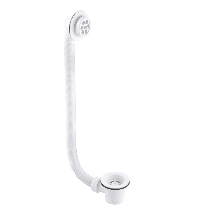 1½” Centre Pin Bath Combined Waste and Overflow: 70mm White Plastic Flange: White Plastic Waste and Overflow : Plug and Chrome Plated Chain
