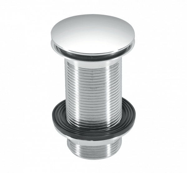 1¼” Chrome Plated Brass Basin Waste – Backnut Model: 60mm Flange x 3½” Tail with Spring-Loaded Mushroom Plug. Type – Unslotted