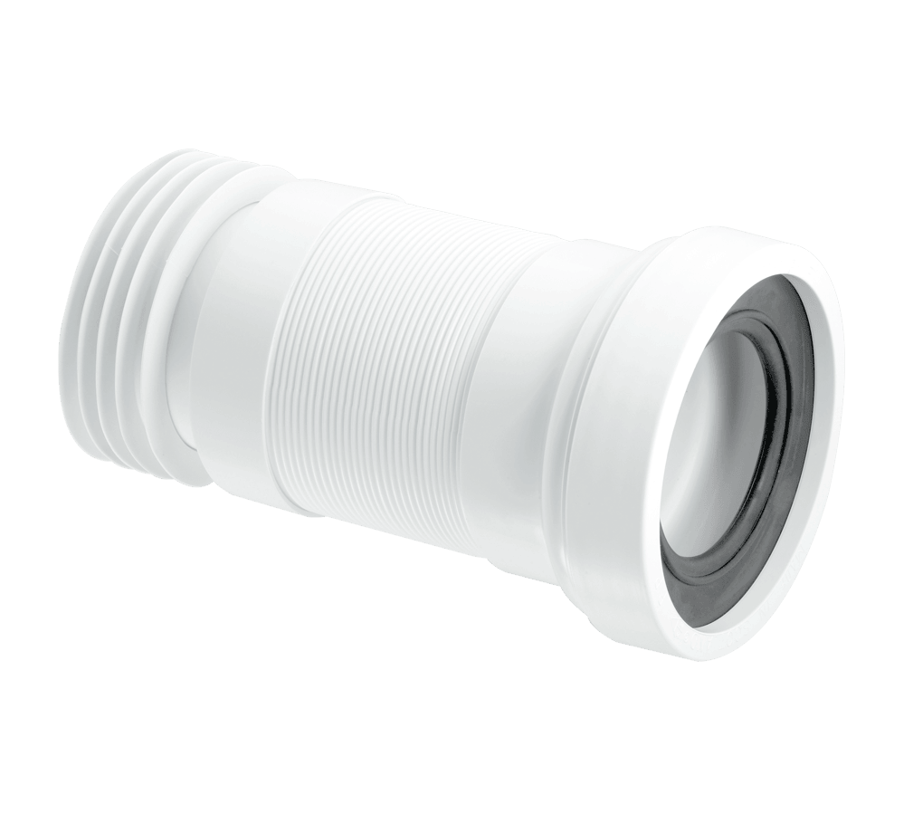 97-107mm Inlet x 4″/110mm Outlet Flexible WC Connector. Easy installation of WC pans in awkward situations. The jubilee clip makes a solid connection that will never come loose. The other end pushes in very snugly to the waste making both ends leak-free, with no build-up of sediment in the flex. Length – 140 > 290mm