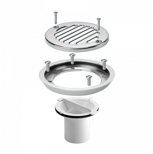 Conversion Kit to convert any TSG50 or TSG52 Gully to a sheet flooring gully with CP Brass Clamp Ring, Stainless Steel Grated Cover Plate and Dip Tube