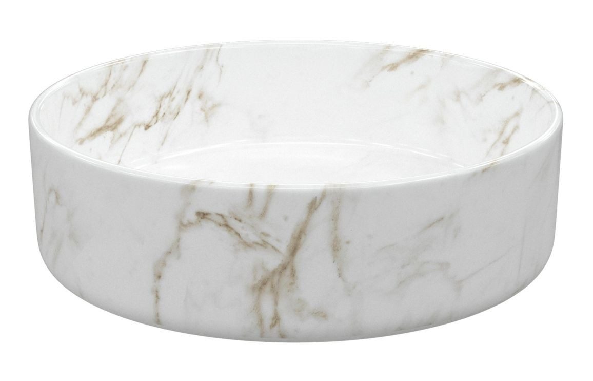 MyBathrooms Dune 355mm Ceramic Round Washbowl & Waste – Marble Effect