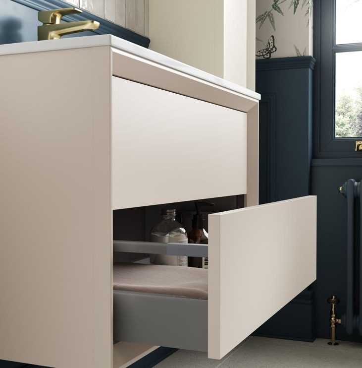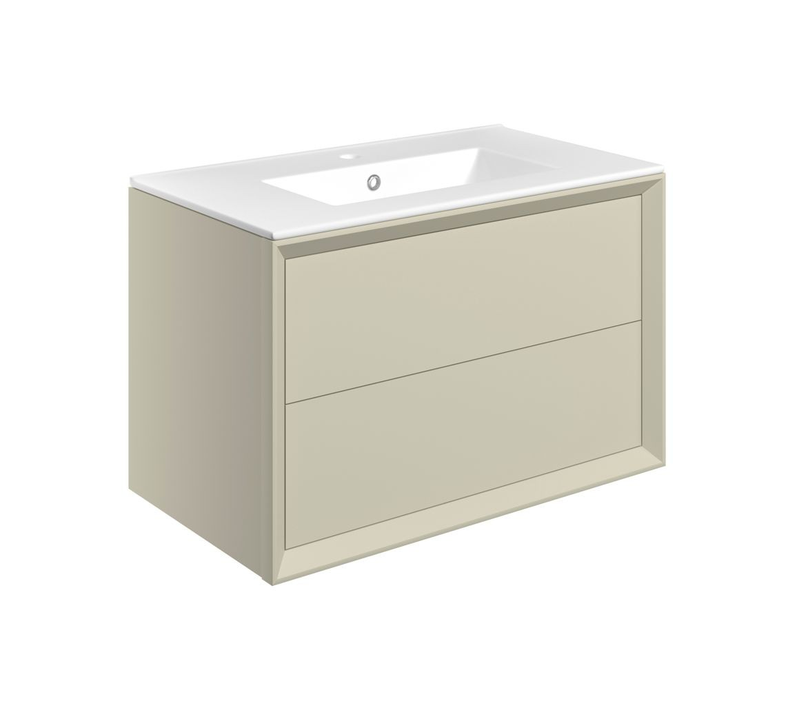 MyBathrooms Laguna Push 810mm 2 Drawer Wall Hung Unit & Thin Edge Basin – Matt Cotton