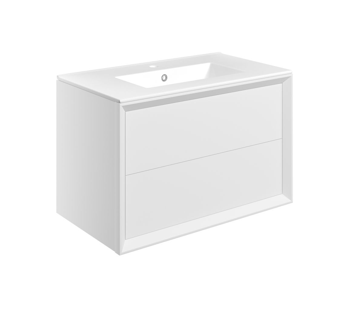 MyBathrooms Laguna Push 810mm 2 Drawer Wall Hung Unit & Thin Edge Basin – Matt White