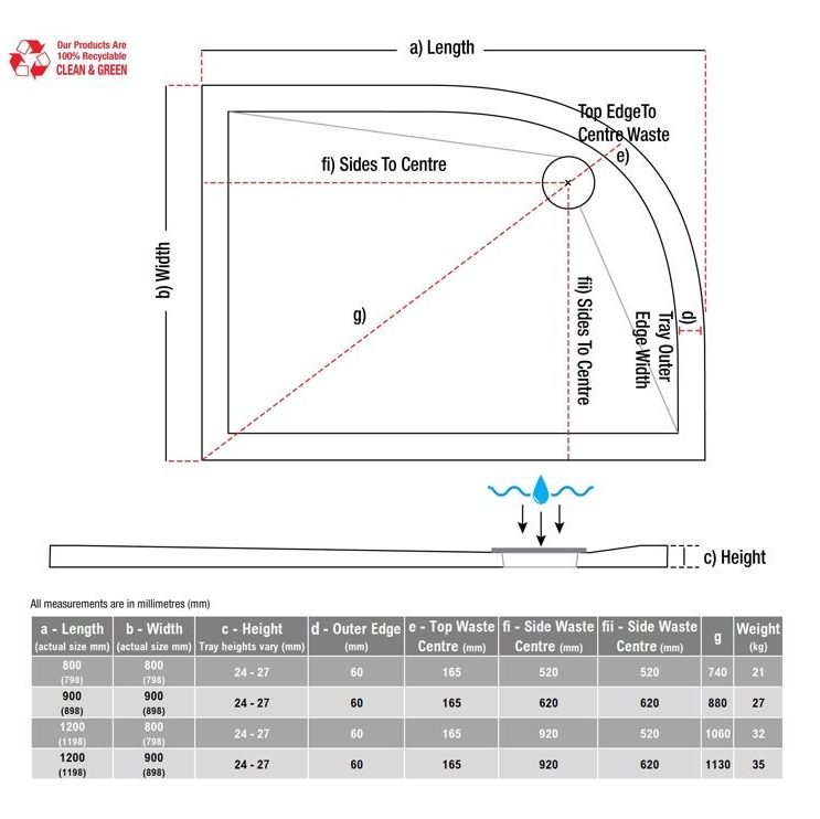 MyBathrooms Optimum 28mm Anti-Slip Ultra-Slim Quadrant Tray & Waste