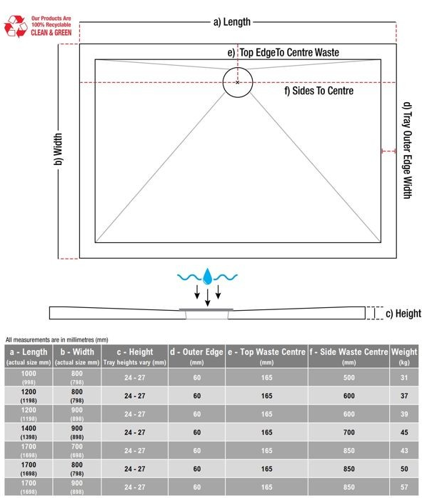 MyBathrooms Optimum 28mm Anti-Slip Ultra-Slim Rectangular Tray & Waste