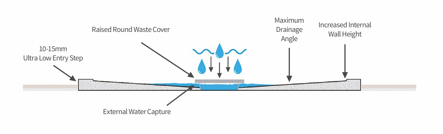 Clever anti-slip surface technology for showering confidence. Perfectly suited for multigenerational living from young families through to the elderly or more infirm, or for those who just want to feel confident underfoot whilst in the shower. Installed in the factory for complete peace of mind.