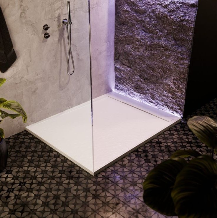 The Slate shower trays are just 30mm in height, complete with an integrated hidden waste design.