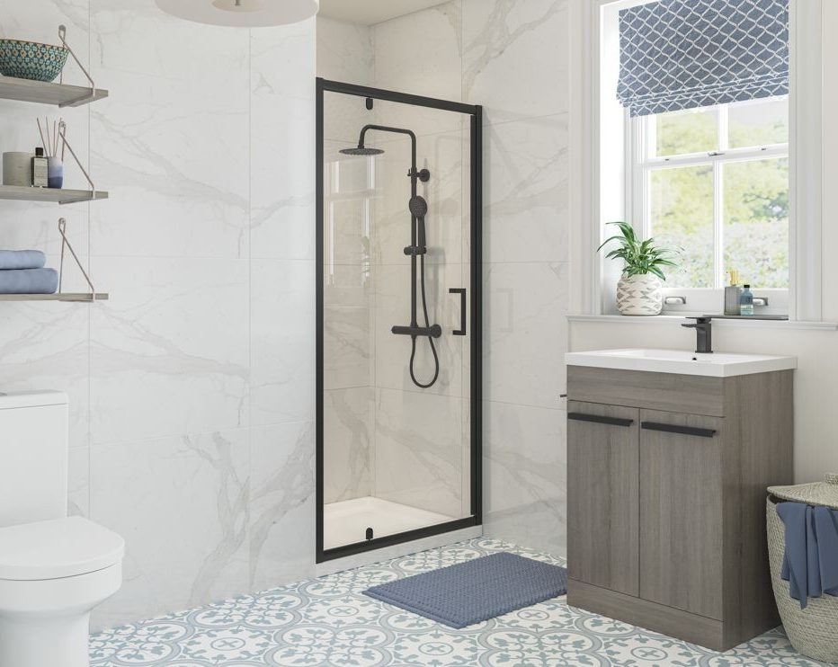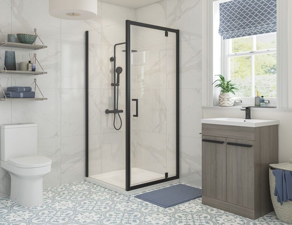 MyBathrooms Optimum Original Pivot Door Shower Enclosure – Matt Black