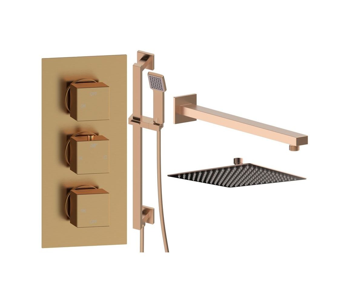 MyBathrooms Square Shower Valve & Kit Pack 3 – Brushed Bronze