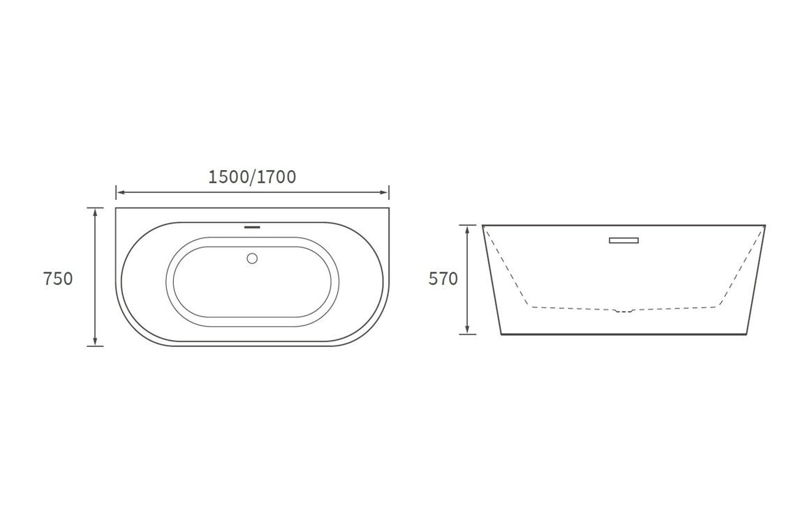 Dimensions – L 1700 x W 750 x H 570mm, Capacity – 210 litre