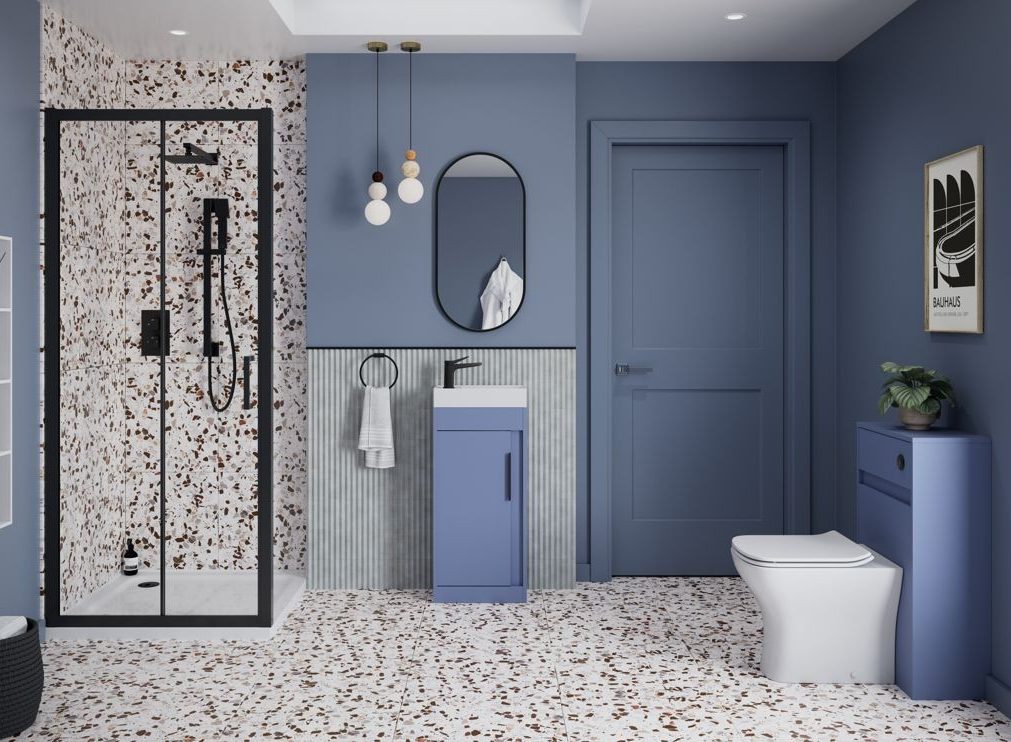 MyBathrooms Volini 410mm 1 Door Floor Standing Unit & Basin – Matt Misty Blue