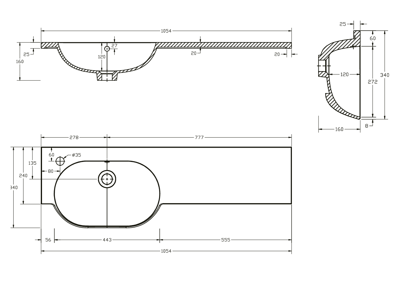 Dimensions: W1054 x D340 x H160mm