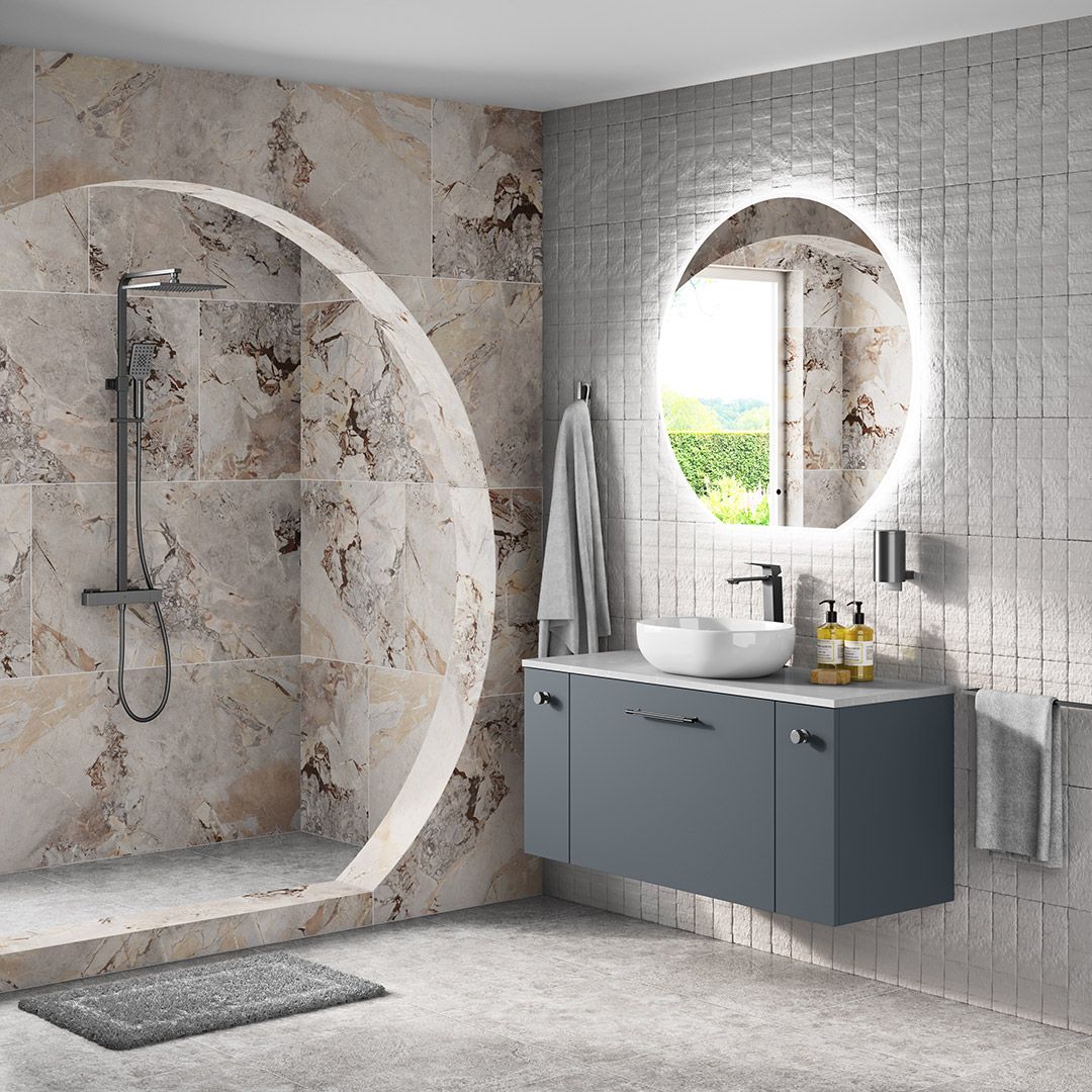Sculptural sophistication, Mani brings a touch of modern artistry to your bathroom with its round silhouette and refined flat base. Enjoy a soft, ethereal glow with phantom lighting that’s beautifully concealed creating the perfect blend of design and innovation.