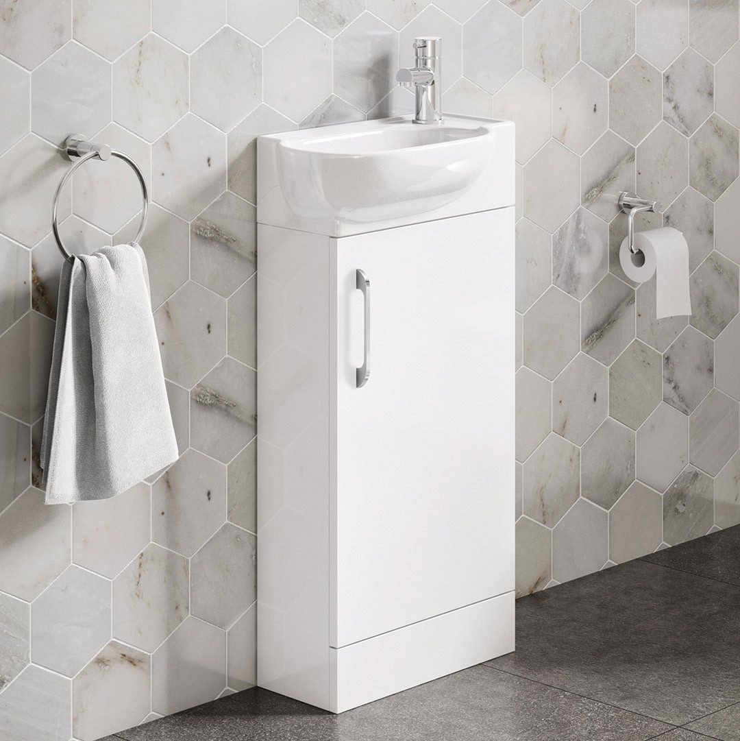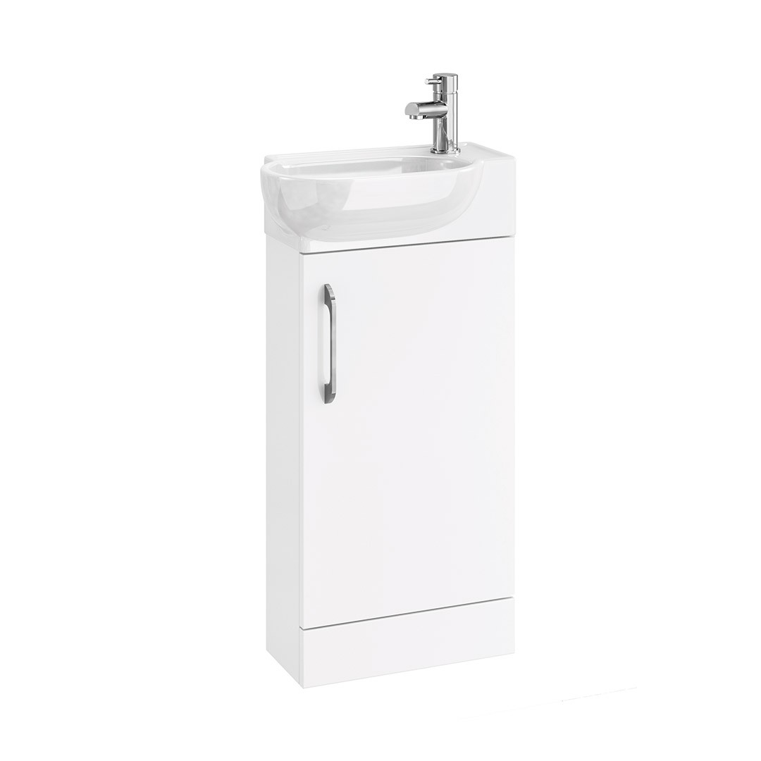 MyStyle Carson 400mm 1 Door Floor Standing Unit & Ceramic Basin – White Gloss