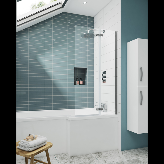 Nuie Ella 5mm Square Hinged Bath Screen – Chrome
