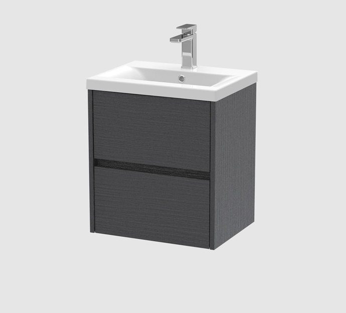 Nuie Havana 500mm 2 Drawer Wall Hung Unit & Mid Edge Basin – Graphite Grey