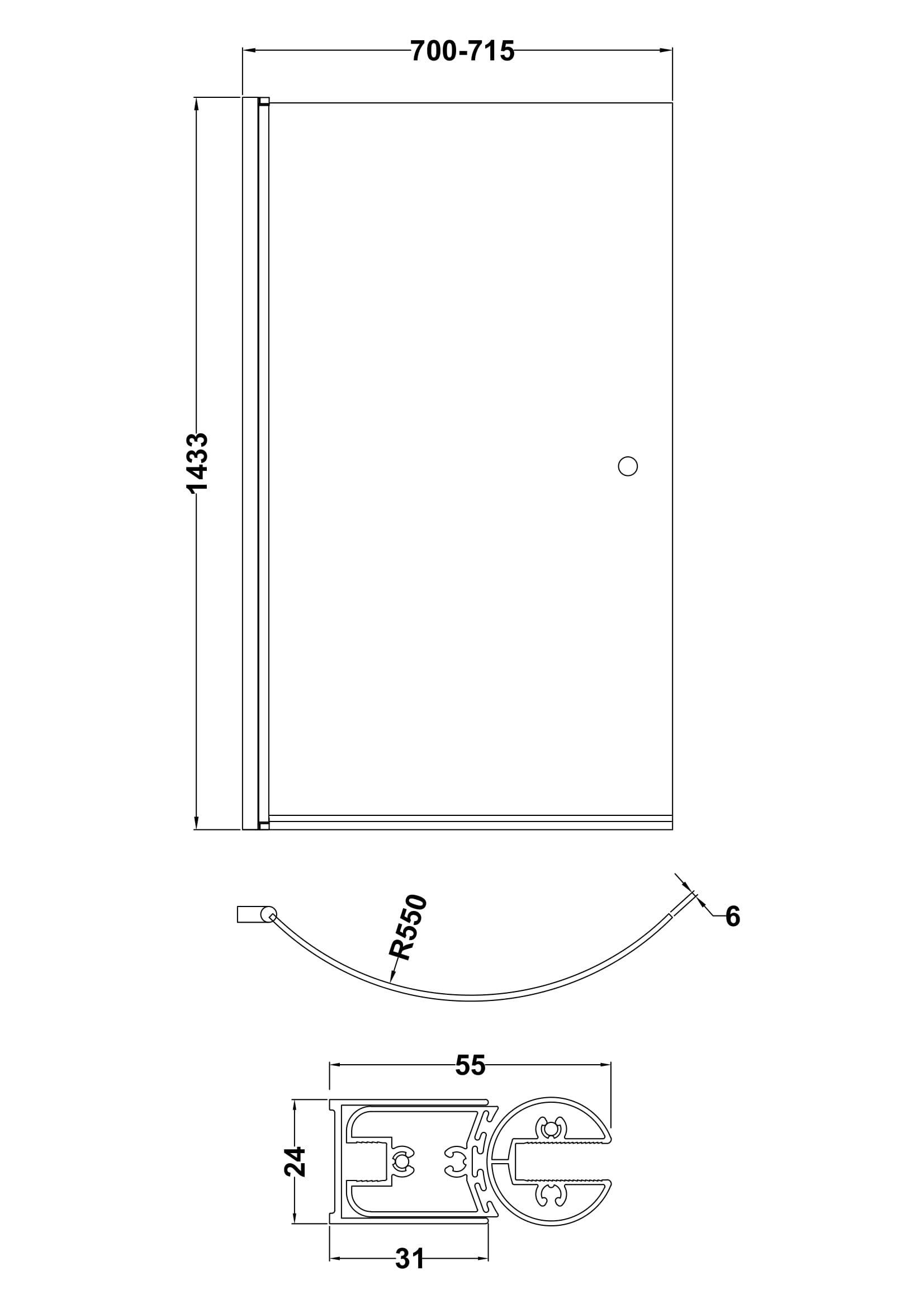 Nuie Pacific 6mm Curved P-Bath Screen with Knob – Chrome