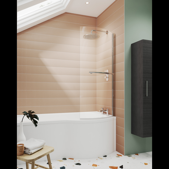 Nuie Pacific 6mm Curved P-Bath Screen with Rail – Chrome