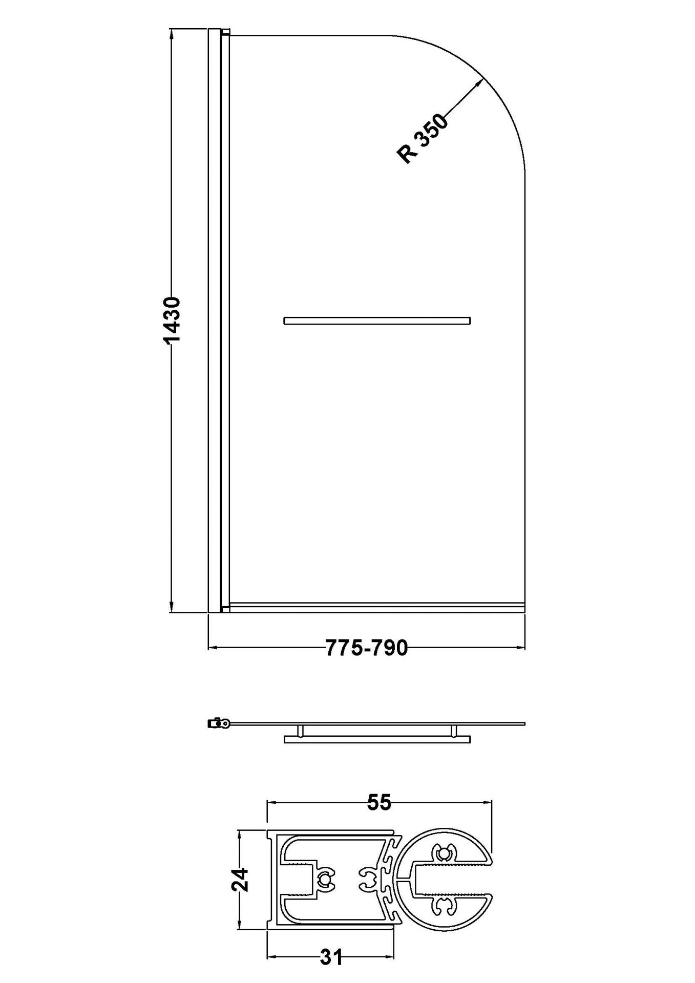 Pacific 6mm Round Bath Screen With Rail