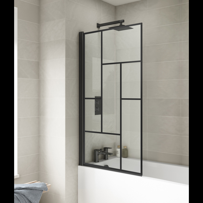 Nuie Pacific 6mm Square Abstract Bath Screen – Matt Black