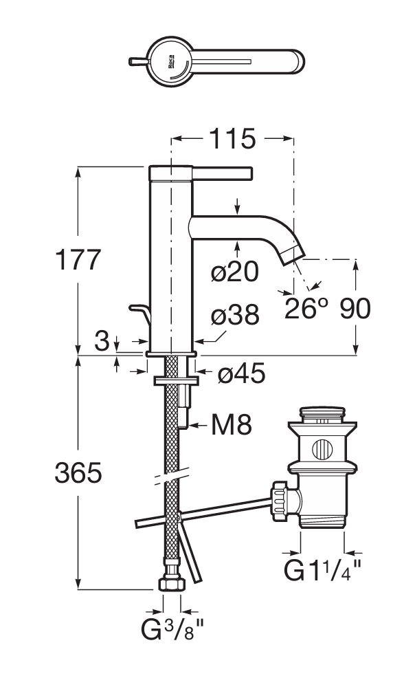 Roca Ona Basin Mixer with Pop-Up Waste – Chrome