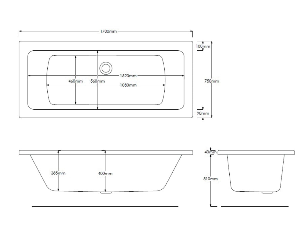 Roca The Gap 1700×750 Acrylic Double Ended Bath – 0TH