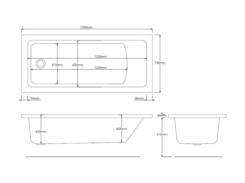 Roca The Gap 1700×750 Acrylic Double Ended Bath – 0TH