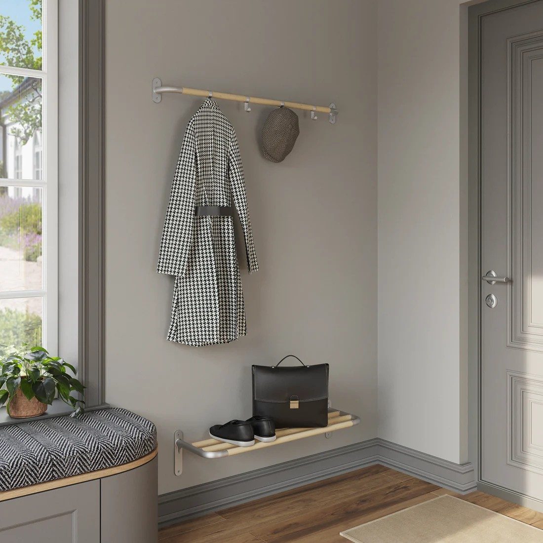 Smedbo Beslagsboden Shoe/Hat Rack with 4 Hooks – Matt Grey/Beech