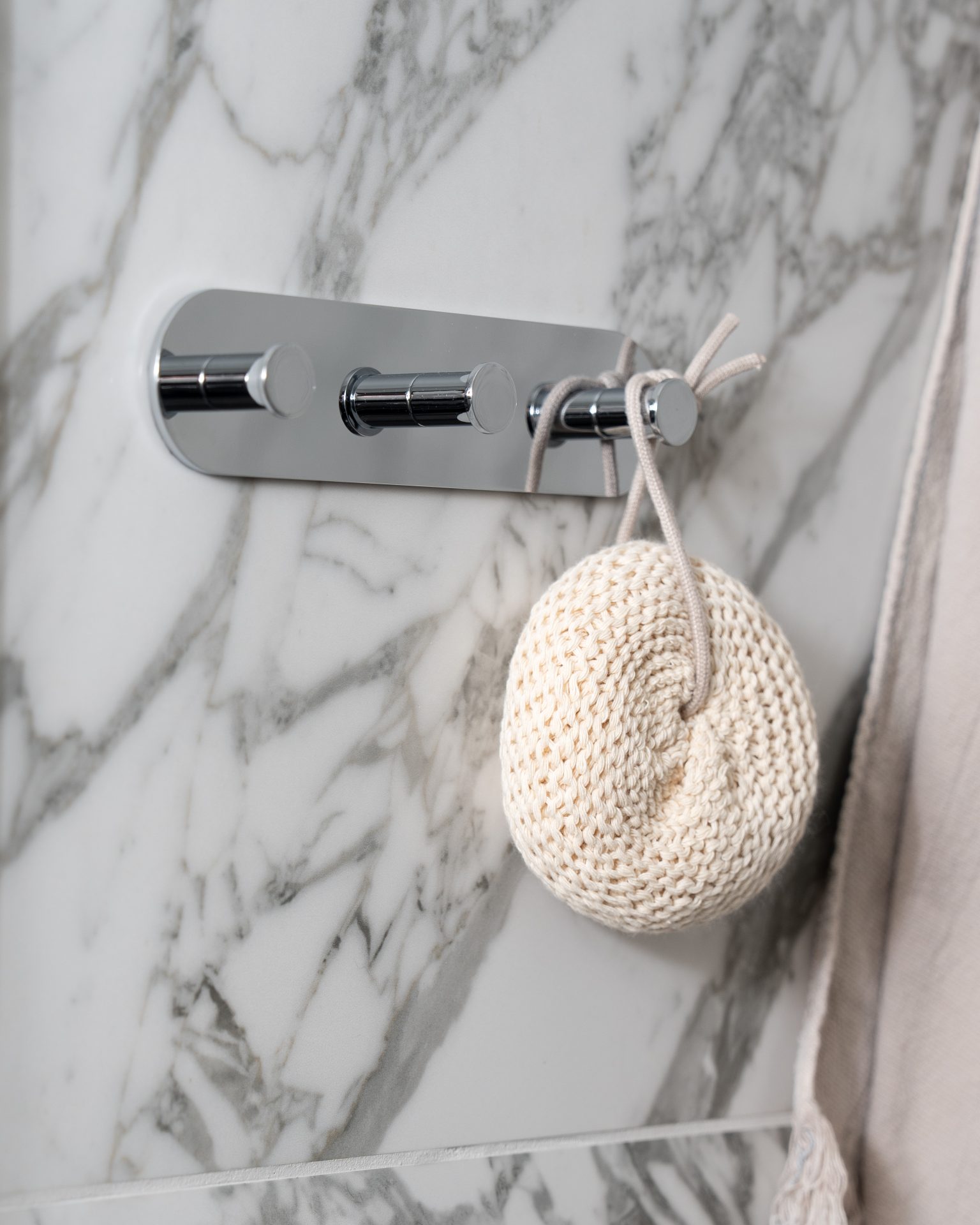 Sleek triple hook with a polished chrome finish. The hook belongs to our self-adhesive DOT series. With its elegant appearance and practical features, the triple hook becomes an affordable interior detail for your bathroom. The triple hook is part of Smedbo DOT bathroom series, which is self-adhesive. Easy installation with 3M tape, so you don’t need to use tools and worry about leaving marks on the wall.