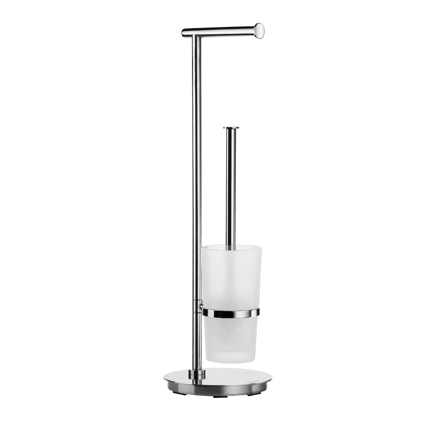 Smedbo Outline Round Toilet Roll Holder & Toilet Brush – Polished Stainless Steel/Frosted Glass