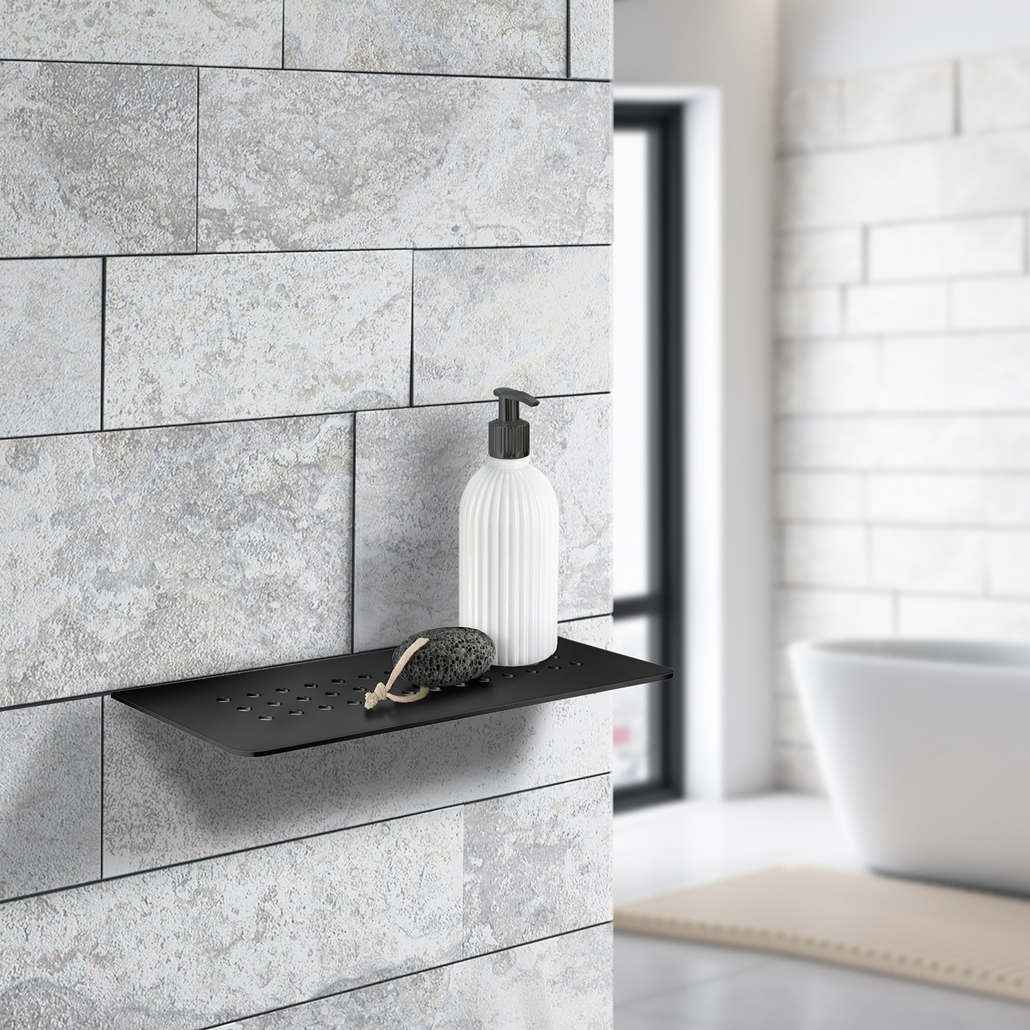 Smedbo Sideline Grout Line Shelf with Holes – Matt Black Stainless Steel