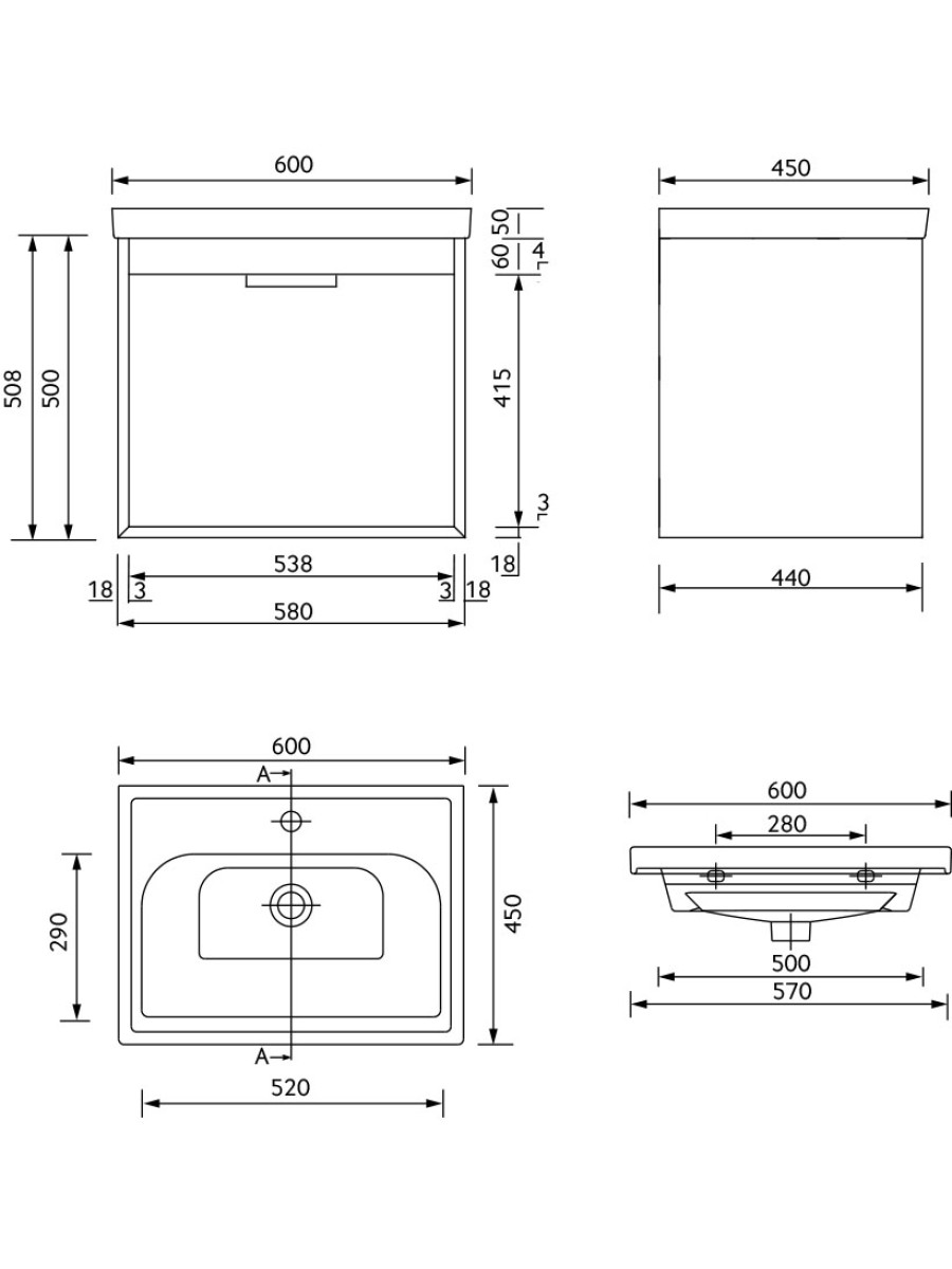 Sonas Fjord 600mm 2 Drawer (One Concealed) Wall Hung Vanity Unit & Ceramic Basin – Midnight Grey Matt
