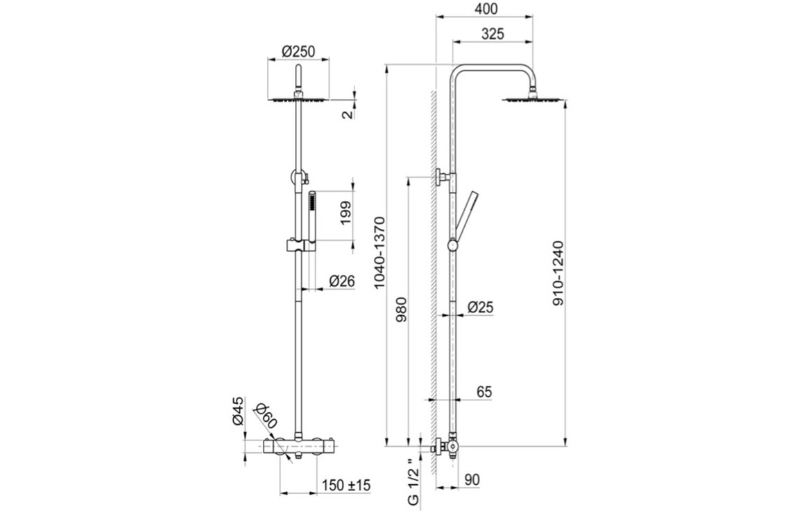 Vema Thermostatic Bar Mixer Shower with Shower Kit & Fixed Head – Stainless Steel