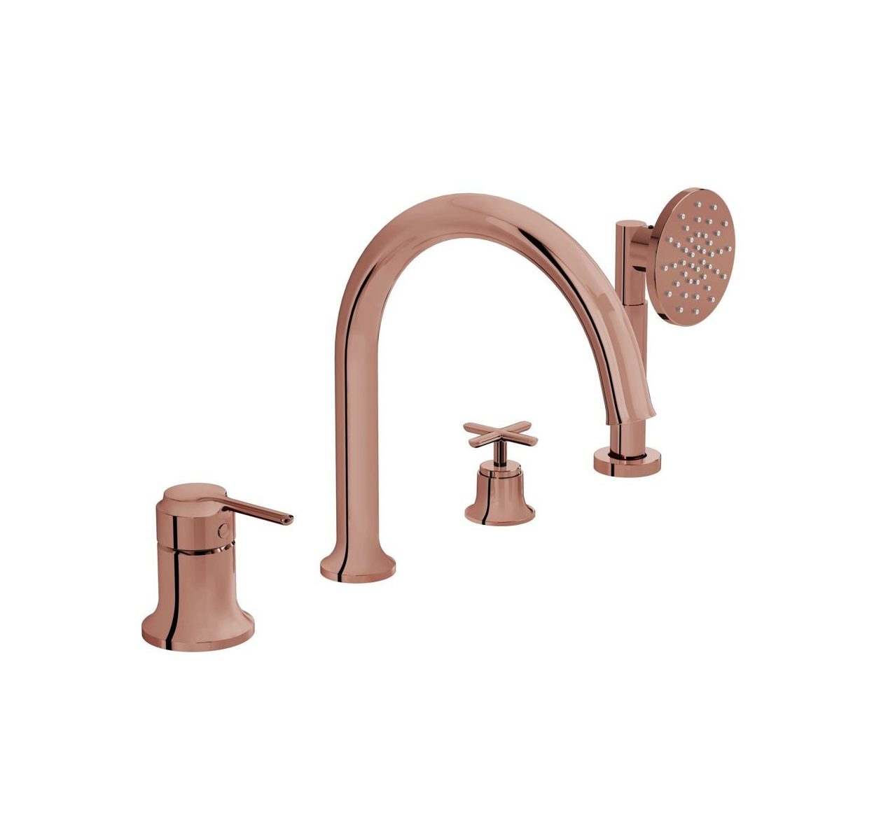 VitrA Origin Classic Deck-Mounted Bath Mixer with Hand Shower – Soft Copper