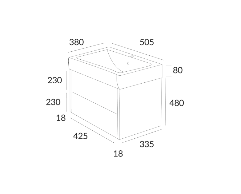 Zaneti Maddinson 500mm 2 Drawer Wall Mounted Unit & Basin – Sandy Oak